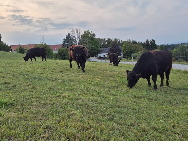 Robust, geländegängig und genügsam sind die wesentlichen Charaktere des Galloway Rindes. Diese Eigenschaften nutzen wir besonders zur Bewirtung unserer eigenen Weideflächen in Rudersdorf im Burgenland. Die Tiere weiden ganzjährig, wobei im Winter Heu zugefüttert wird.